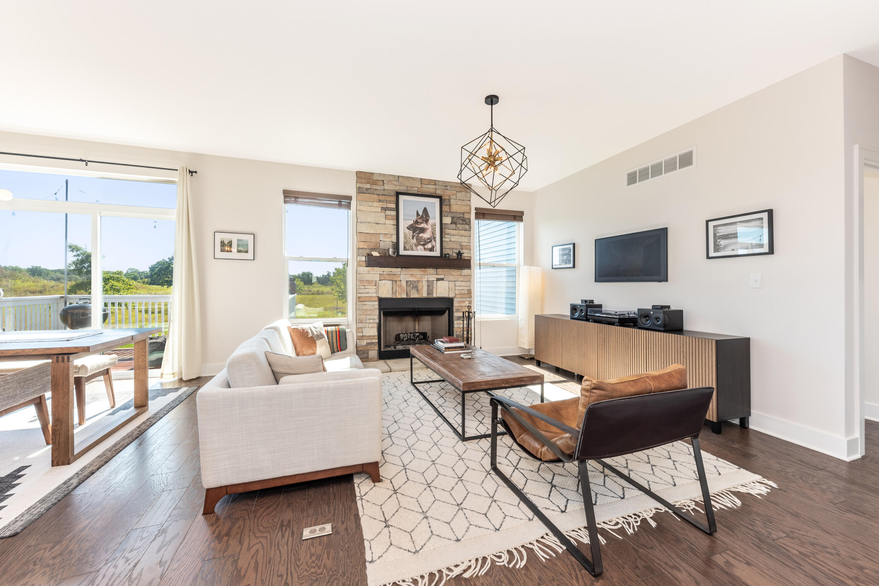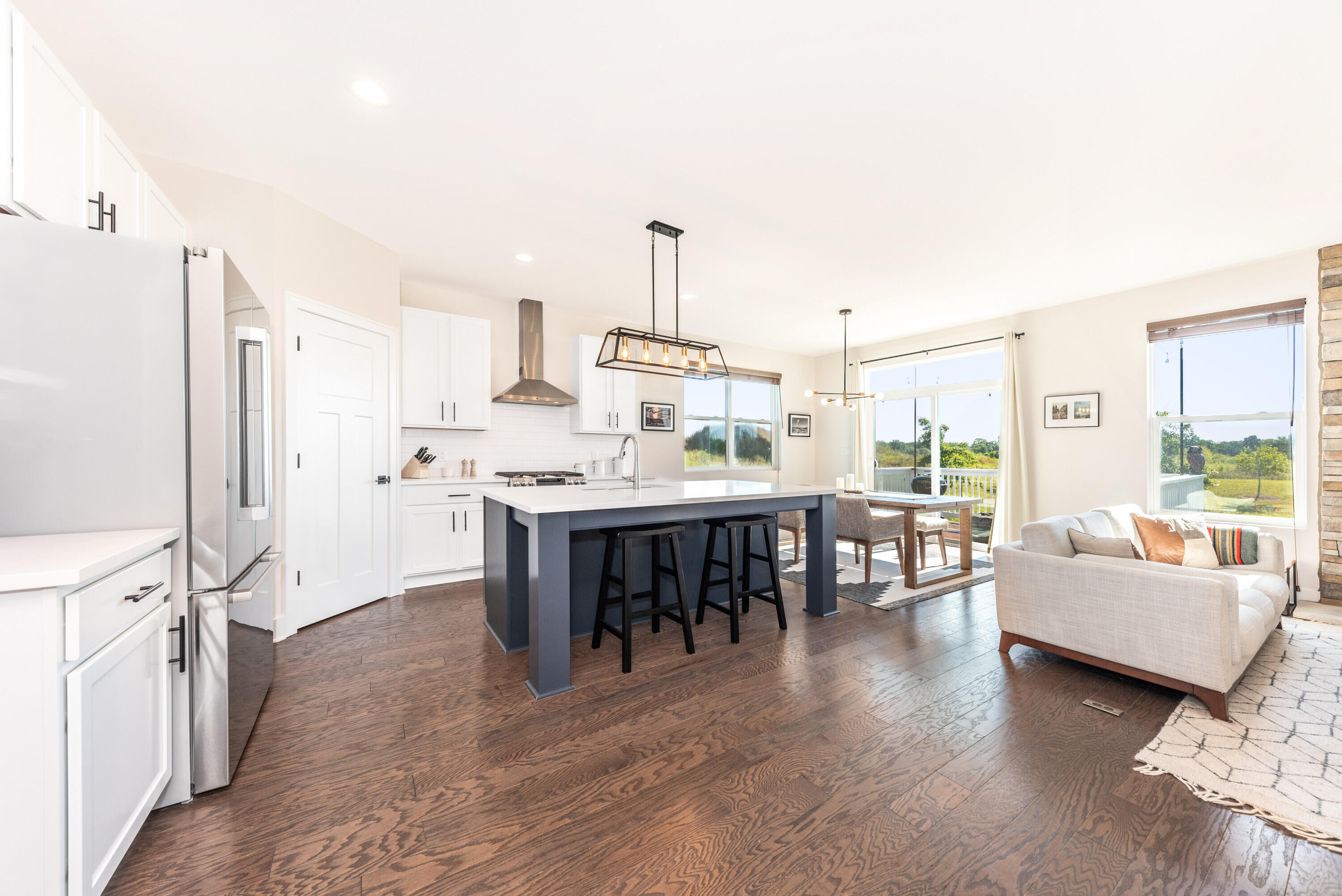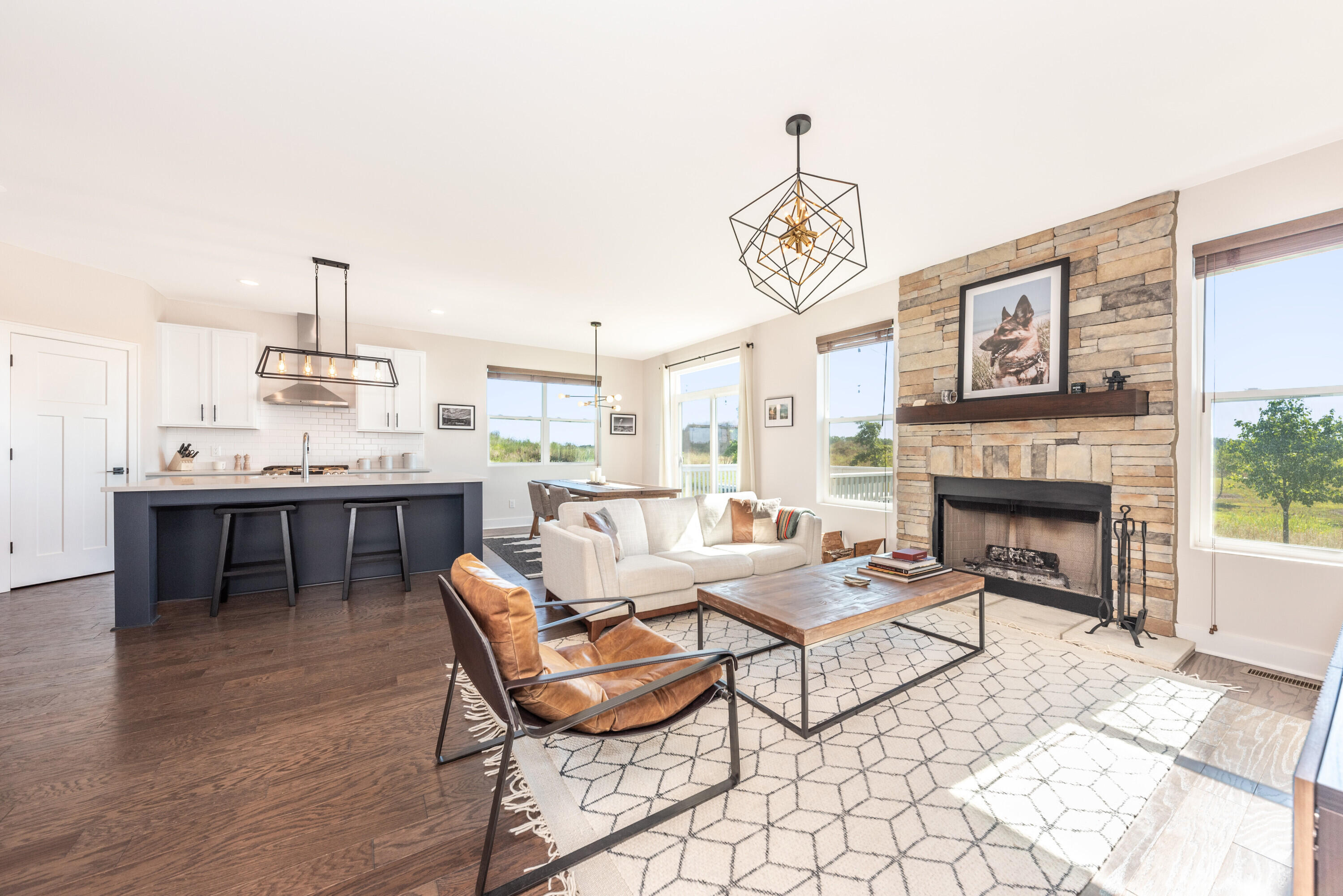 Welcome to Westchester Farms, where refined design meets a rare, premium setting. This nearly new Malden Craftsman sits at the end of the neighborhood on a premium lot that opens directly to nature, offering privacy, peaceful views, and a sense of escape just minutes from downtown Chelsea. With nearly $60,000 in builder-selected upgrades, every detail reflects a home curated with intention and finished to a higher standard. Inside, the home is bright and expansive, elevated by optional additional windows that fill the space with natural light throughout the day. Full hardwood flooring runs through the entire home, including the staircase and upper level, creating a seamless, upscale feel from room to room. Upgraded Craftsman doors, upgraded trim, and sleek black hardware complete the clean, high-end aesthetic. The open-concept main level is anchored by a stunning kitchen designed for both beauty and performance. Highlights include upgraded quartz countertops, a large center island, tile backsplash, recessed lighting with dimmer, pantry outlet, a stainless GE vent hood, and upgraded high-end, built-to-last cabinetry with custom 42-inch upper cabinets and a thoughtfully planned layout. The dining area opens to a treated-lumber deck, wired for outdoor lights and ideal for entertaining or quiet evenings outdoors. In the great room, a dramatic floor-to-ceiling stone fireplace with custom wood mantel serves as a true statement piece, offering the charm of a wood-burning fireplace with the convenience of a gas ignitor. The main-floor primary suite is a private retreat featuring a spacious walk-in closet and a spa-inspired bath with dual sinks, upgraded quartz counters, upgraded cabinetry, taller vanity height, and a full-tile luxury shower with floating glass enclosure, recessed shower lighting, and elevated fixtures and hardware. Upstairs offers two additional bedrooms, a full bath, and a flexible loft space perfect for a second lounge, office, or media area. The full basement provides exceptional future potential with nine-foot ceilings, outlets throughout, an egress window, and rough plumbing for a future bathroom. Premium lot, designer-level upgrades, and a turnkey feel throughout. This is the kind of home that rarely becomes available.