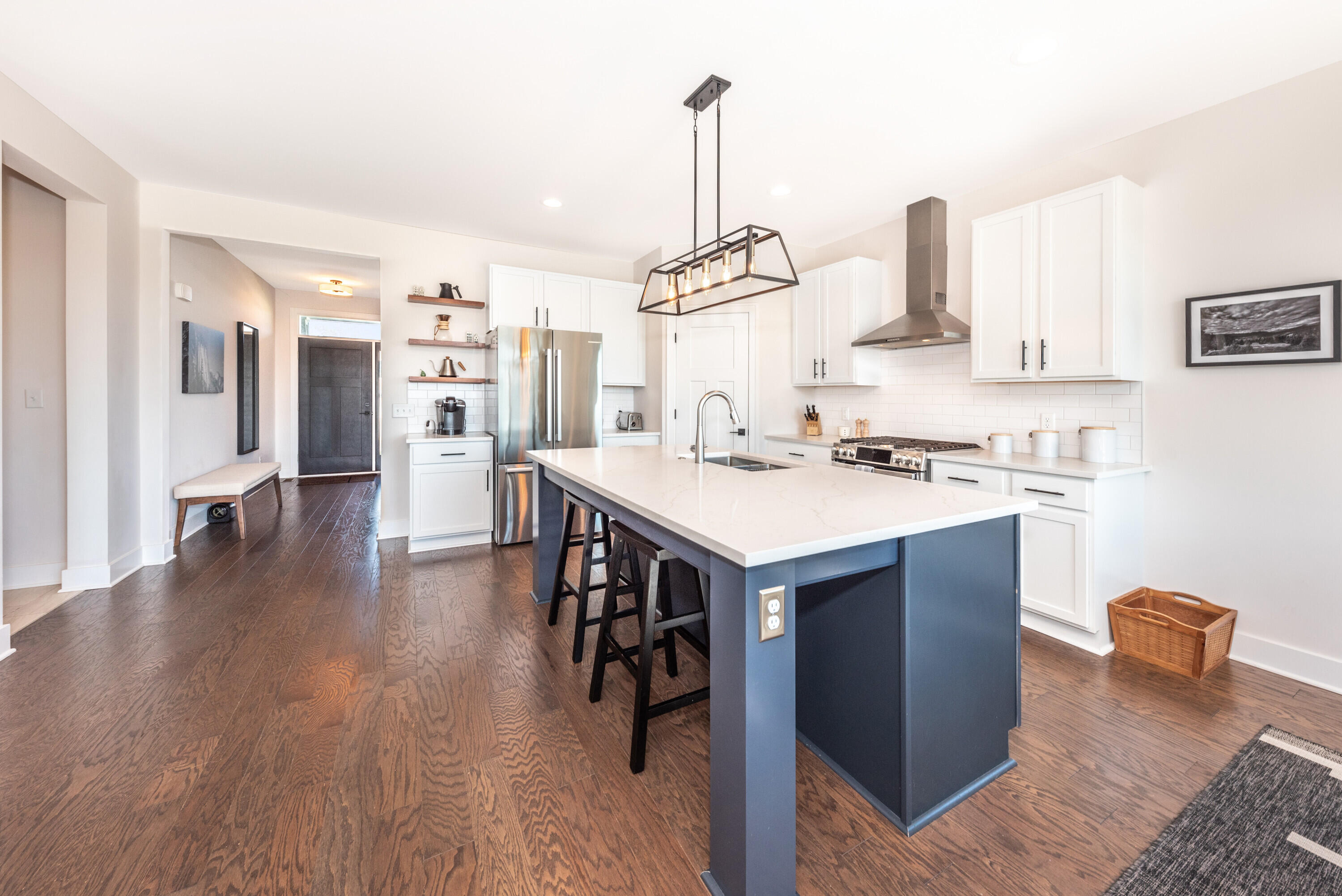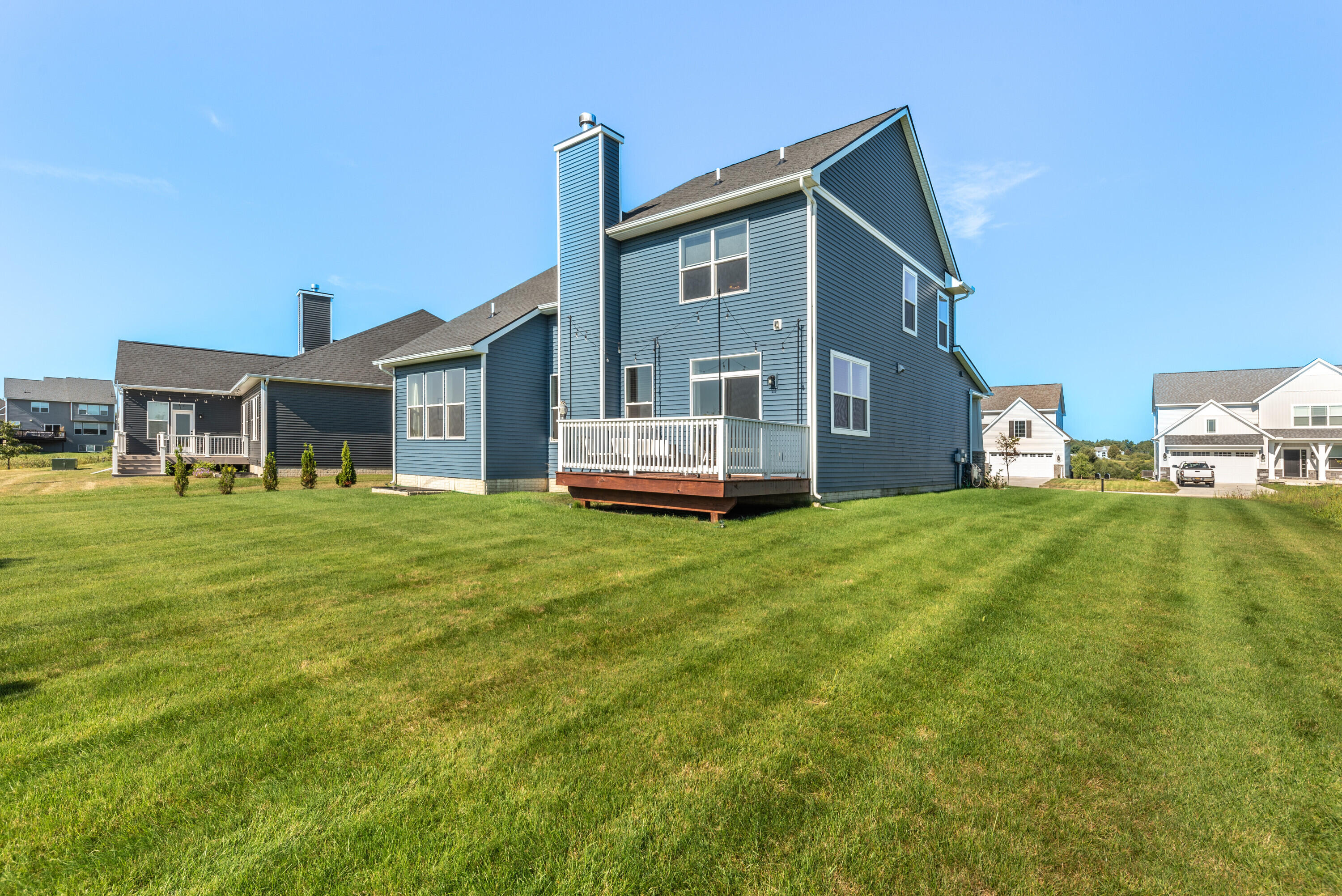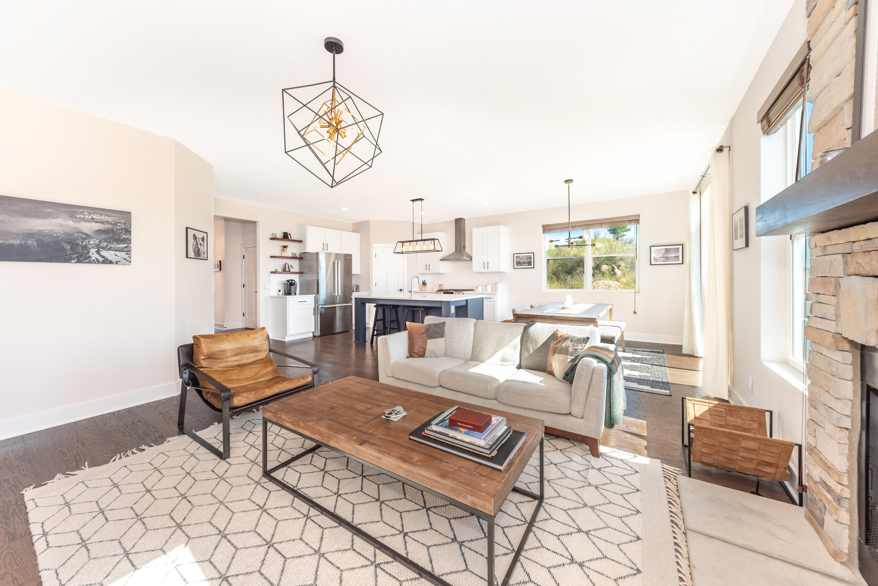 Welcome to Westchester Farms, where refined design meets a rare, premium setting. This nearly new Malden Craftsman sits at the end of the neighborhood on a premium lot that opens directly to nature, offering privacy, peaceful views, and a sense of escape just minutes from downtown Chelsea. With nearly $60,000 in builder-selected upgrades, every detail reflects a home curated with intention and finished to a higher standard. Inside, the home is bright and expansive, elevated by optional additional windows that fill the space with natural light throughout the day. Full hardwood flooring runs through the entire home, including the staircase and upper level, creating a seamless, upscale feel from room to room. Upgraded Craftsman doors, upgraded trim, and sleek black hardware complete the clean, high-end aesthetic. The open-concept main level is anchored by a stunning kitchen designed for both beauty and performance. Highlights include upgraded quartz countertops, a large center island, tile backsplash, recessed lighting with dimmer, pantry outlet, a stainless GE vent hood, and upgraded high-end, built-to-last cabinetry with custom 42-inch upper cabinets and a thoughtfully planned layout. The dining area opens to a treated-lumber deck, wired for outdoor lights and ideal for entertaining or quiet evenings outdoors. In the great room, a dramatic floor-to-ceiling stone fireplace with custom wood mantel serves as a true statement piece, offering the charm of a wood-burning fireplace with the convenience of a gas ignitor. The main-floor primary suite is a private retreat featuring a spacious walk-in closet and a spa-inspired bath with dual sinks, upgraded quartz counters, upgraded cabinetry, taller vanity height, and a full-tile luxury shower with floating glass enclosure, recessed shower lighting, and elevated fixtures and hardware. Upstairs offers two additional bedrooms, a full bath, and a flexible loft space perfect for a second lounge, office, or media area. The full basement provides exceptional future potential with nine-foot ceilings, outlets throughout, an egress window, and rough plumbing for a future bathroom. Premium lot, designer-level upgrades, and a turnkey feel throughout. This is the kind of home that rarely becomes available.