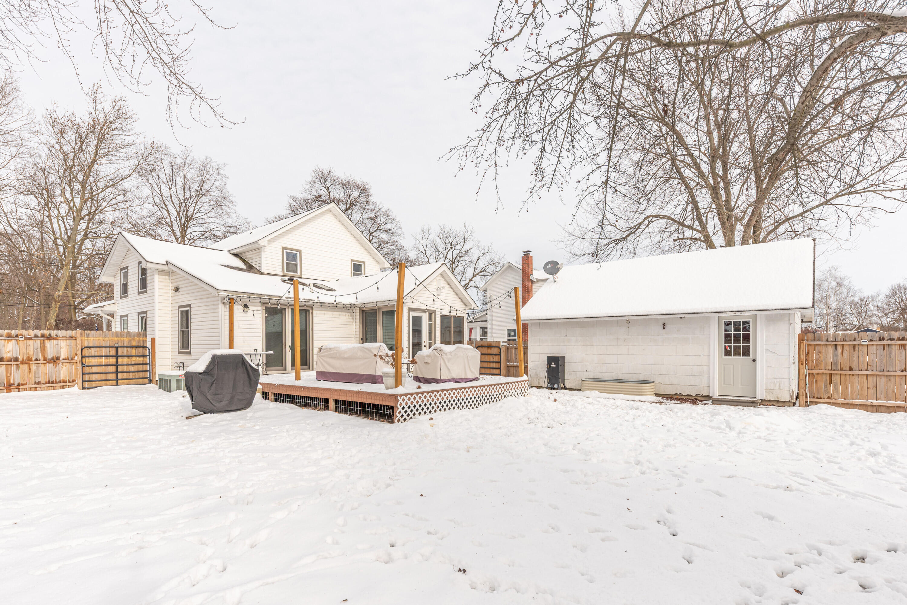 Beautifully remodeled historic home just blocks from downtown Tecumseh! This charming 3-bedroom, 2-bath residence blends classic character with modern updates. The main level features a tastefully remodeled kitchen and full bath with laundry, along with hardwood floors flowing through the dining and living rooms. Large historic bay windows fill the home with natural light. The entire upper level has been recently renovated, offering two spacious bedrooms, a full bathroom, and a convenient storage room. Walk through the 3 season mud room out to back deck and enjoy the seclusion of the large backyard with 6-foot privacy fence. Also includes a 2-car detached garage and additional parking located in the back. Move-in ready and perfectly located near shops, restaurants, and parks�don't miss this Tecumseh gem!